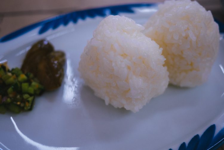 つけ合わせにでてきた地元の野菜をつかったラタトゥイユも「これは・・うう、うまい」と、しみじみ味わっちゃうくらいに美味しい。そして、これもメインだろうという地元産コシヒカリのおにぎり。塩にぎりなのだけど、これもまたお米の甘みをひきたてていて味の奥行きが深いなあ・・贅沢な食事だ。
