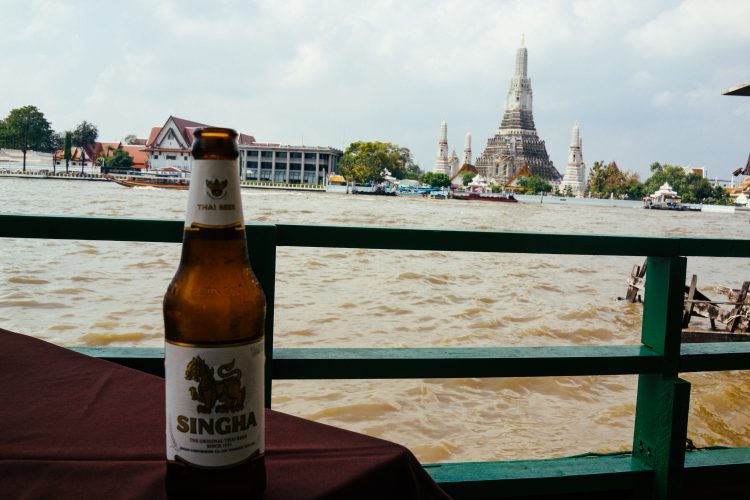 ビール飲みながら、チャオプラヤ川を行き交う船や、向こう岸にあるワット アルンの優雅な姿を眺めたり。ぼけーっとした時間を過ごしているのは「しあわせ」と呼ぶ以外の言葉がみつからないな。暑いことすらなんか気持ちがいい。
