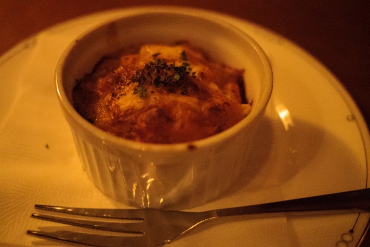 そして、お通しに出てきたのが小さいお皿に入ったラザニアが出てきて、これにも驚いた。最初、隣の人はかわいくて美味しそうなもの食べているなと思っていたのだが、まさかそれがお通しだったとは。手がこんでいて楽しい。