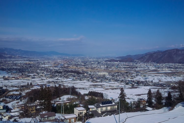 遠く長野の市街地まで見渡せる善光寺平の風景は本当に美しい。冬の張りつめた空気は澄んでいてくっきりと景色がみえる。この路線はたしかに三大車窓だ。全然知らなかったが来てみてよかった。旅とは出会いだなあって思うわけです。