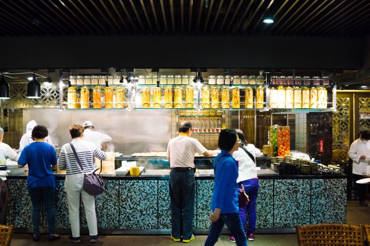 広い店内には日本食やイタリアン、中華などジャンル別にコーナーが分かれていて気になるところから好きなだけ料理をとることができる。とくにおすすめのコーナーは本場なだけに中華料理、そして以外なのが和食で手巻き寿司を提供しているところ。
