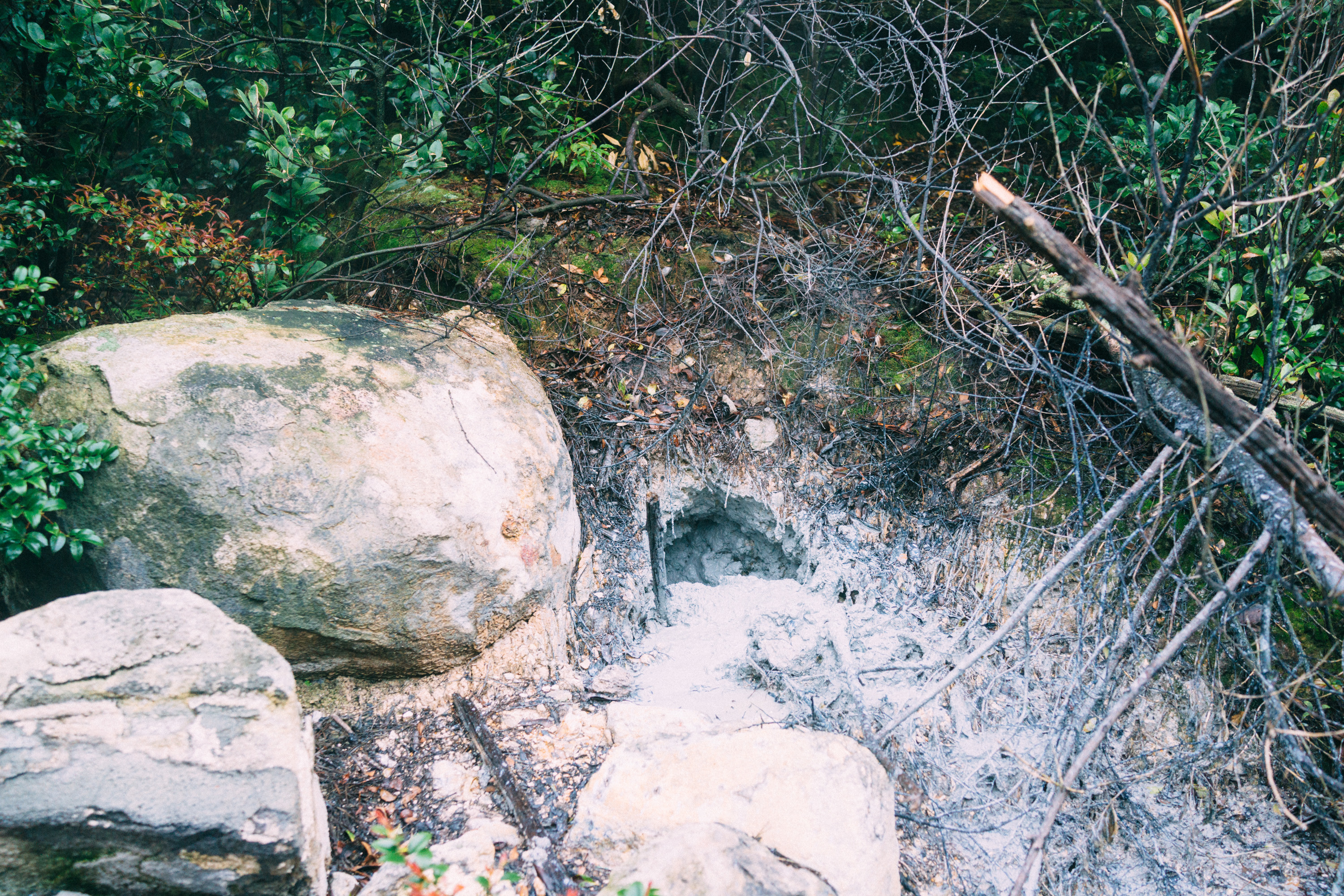 それにしてもあちこちから温泉湧きすぎだろう。ぽこぽこ音がしていて、まさに地獄っぽい。終着のところはちょっとした広場になっていて、大きな岩がゴロゴロと転がっている。この岩の位置が変わるってどんなことが起きるのだ。