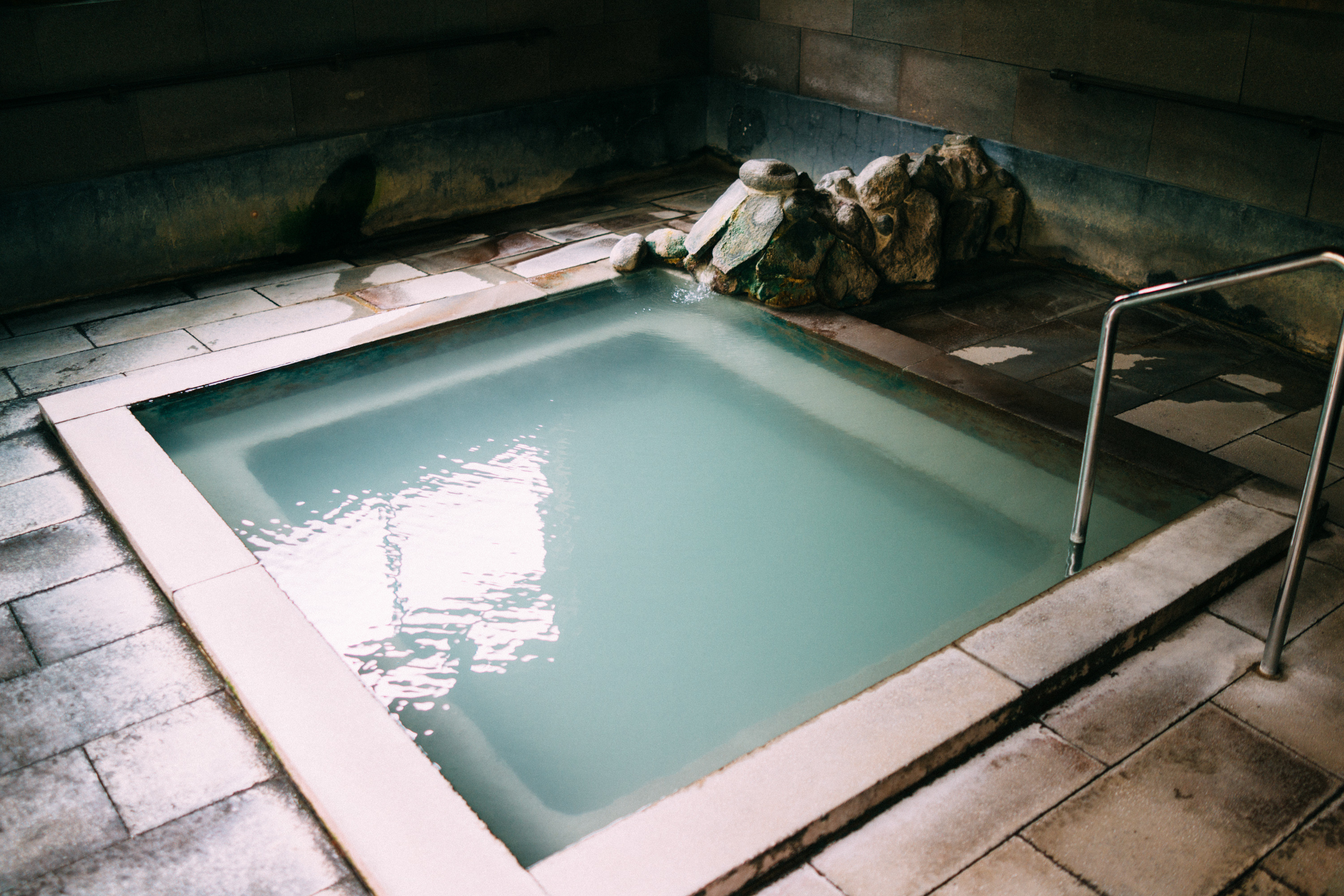 三種類の温泉のうち、もっとも一般的でクセがないのは「桜湯」で、白濁したお湯はほどよい暖かさで気持ちがいい。朝の一番風呂で入ると、お湯はそれほど濁っておらず、温泉の成分が下に沈殿しているのがわかる。僕としてはこの温泉が一番好き。