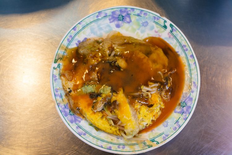 メニューはいくつかあるのだけれど、おすすめはなんといっても蚵仔煎という牡蠣のオムレツ。牡蠣は小ぶりで牡蠣のぷりぷりな食感というよりも風味を味わうスタイル。