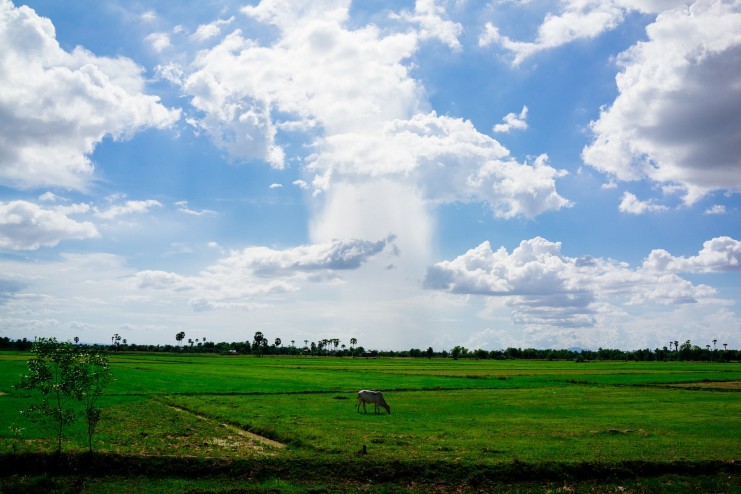 道中、カンボジアの風景もまた美しい