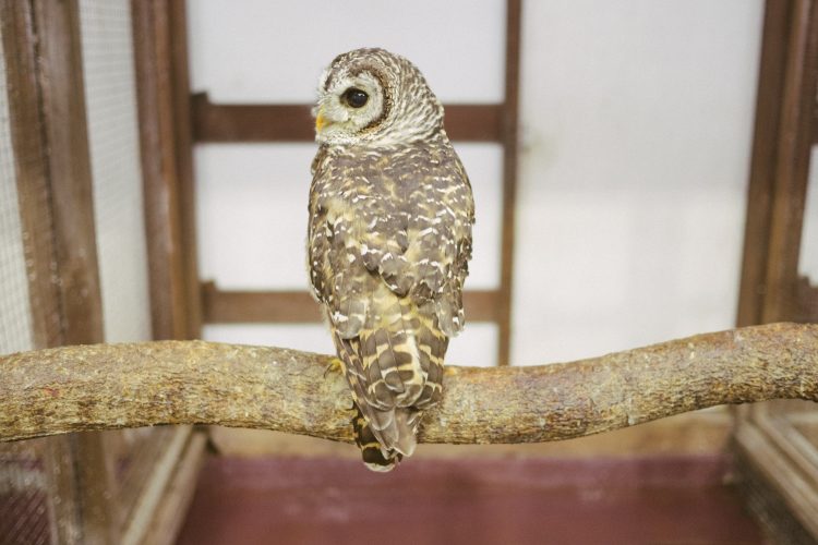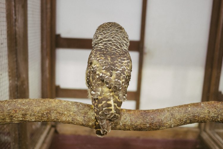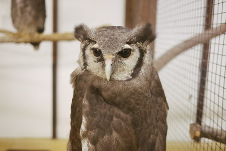 入園するとすぐのところには各種のフクロウやミミズクといった猛禽類をガラス越しにみることができる。