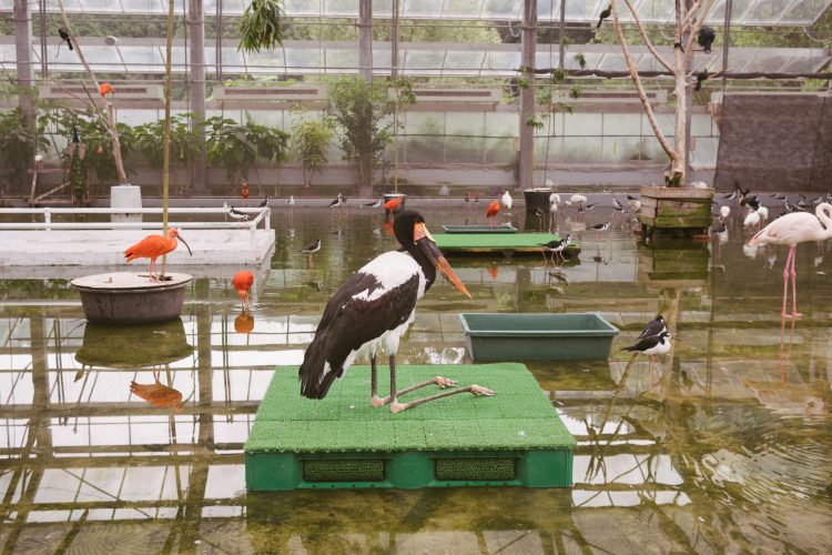 2016年7月からは温室の一番奥にハシビロコウが登場。すごい大物感のあるガラ悪い鳥だなと思ったら、実際かなり攻撃性の強いやつらみたいだ。