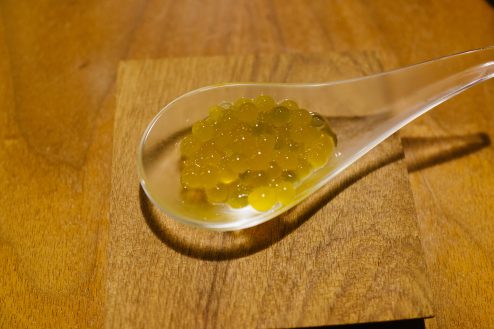 デザートの前にアルギン酸でいくらのように処理されたつぶつぶを食べたけれど、これがなにで手来ていたのか思い出せず。すっきりした味だったことは覚えているのだが。