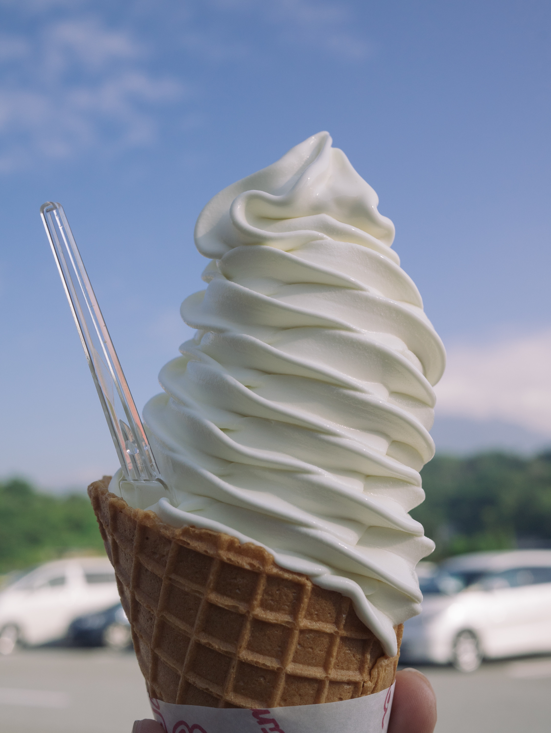 そして、もうひとつは地元産の牛乳から作られたソフトクリーム。通常サイズと特大サイズの二種類があるのだが、ここはひとつ特大サイズを試してみて欲しい。値段の差以上に大きさが全然違っていて、ソフトクリームを心ゆくまで堪能することが出来る。そして、ここのソフトクリームはどこまで食べても濃厚なクリームの味がする。いい天気の日に八ヶ岳を眺めながら食べるソフトクリームは最高に気持ちがいい休日になると思う。