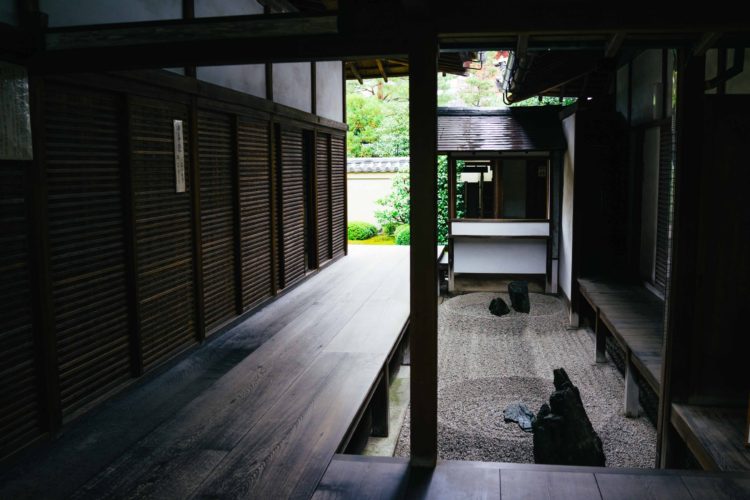 もうひとつの枯山水である東滴壺は廊下に囲まれた小さな壺石庭なのだけど、これもまた印象的。驚いたのは昭和時代に作られた石庭とのことで、ほぼ現代に作られたような庭なのに、この寺の趣にぴったりと溶けこんでいる。この庭もまた必見。季節を問わず美しさを体験できる寺院だと思う。
