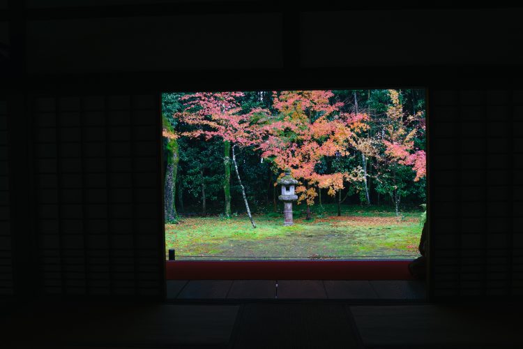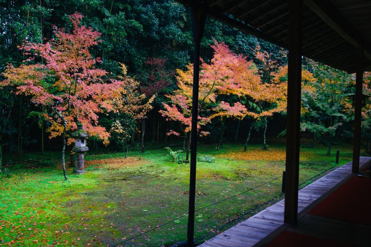 この寺院は千利休がつくった、豊臣家の家紋である瓢箪をかたどった「直中庭」が有名で、紅葉シーズンには苔の緑と色づいた紅葉の色のコントラストが目に鮮やかな風景。それほど広い庭園ではないものの、写真撮影ができない有料の庭園ということもあり、ハイシーズンでも大混雑というわけではないのがいいところだ。写真撮影から開放されて、のんびりと紅葉風景を楽しめるのは、なんだかいまとなっては昔ながらのことかもしれない。