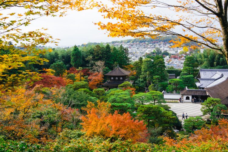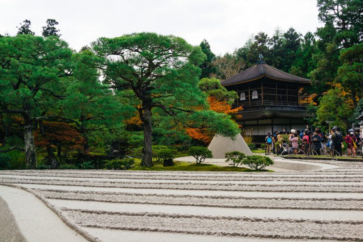 ここから奥の方に進むと銀閣寺の裏山へと登るルートがあり、観光で疲れ切った足では悩ましいところだが、登ってみると清水寺とはまた異なる京都の町が一望できるので来てみてよかったなと思える風景だ。とくに紅葉シーズンは美しく、自然と寺院の組み合わせが日本らしい風景を作っている。